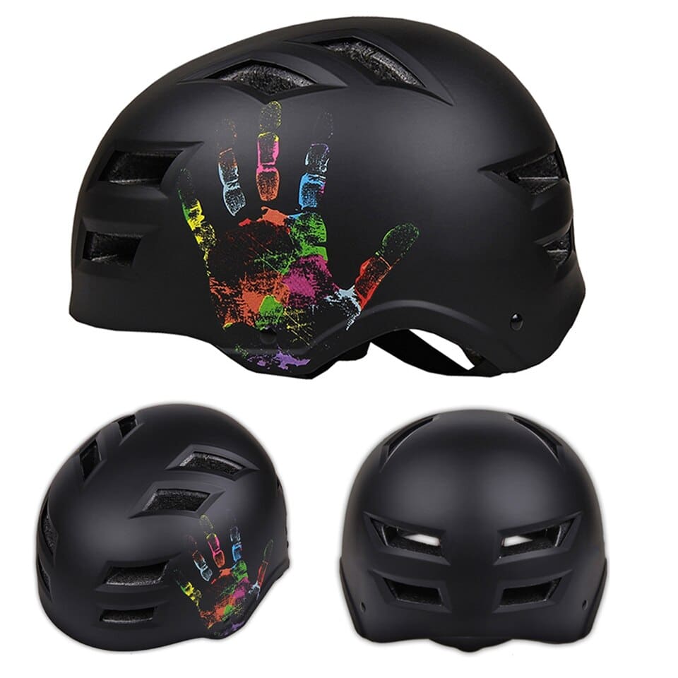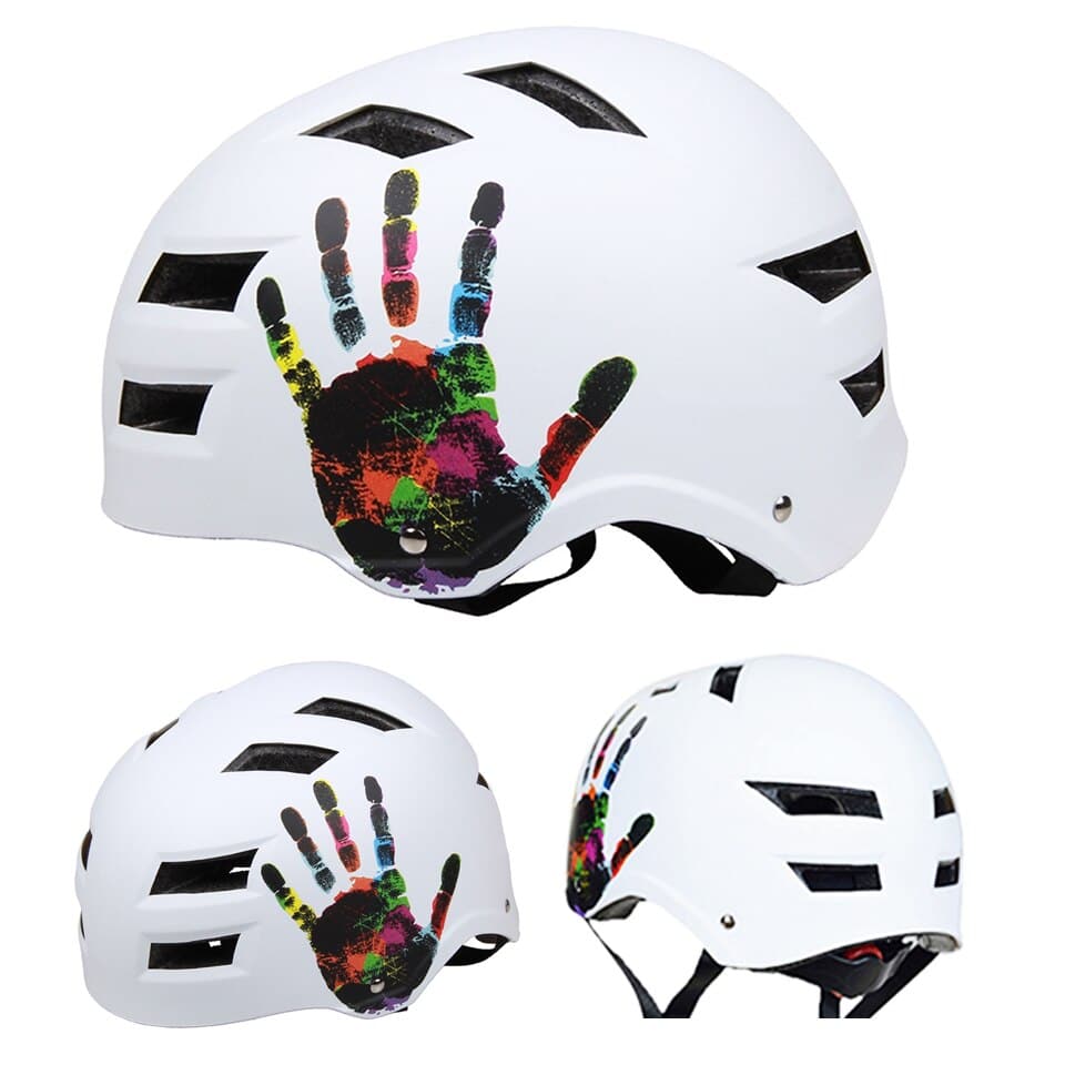 Votre enfant est fan de sport extrême ? Faites de sa sécurité une priorité et procurez-lui ce joli casque de sport couleur unie à motif main colorée. Il est léger, solide et saura protéger la tête de votre enfant contre les chocs. Ce casque pour enfant est idéal pour le vélo ou encore le skateboard.