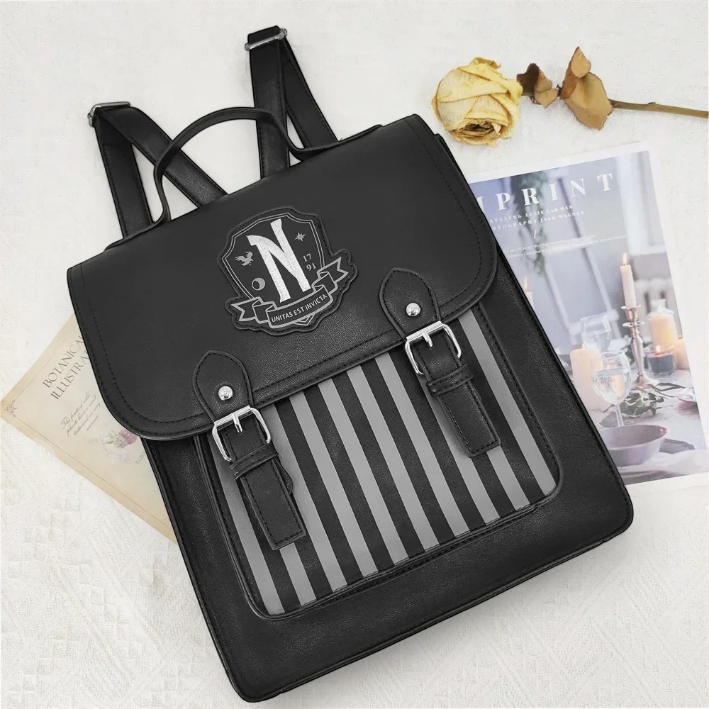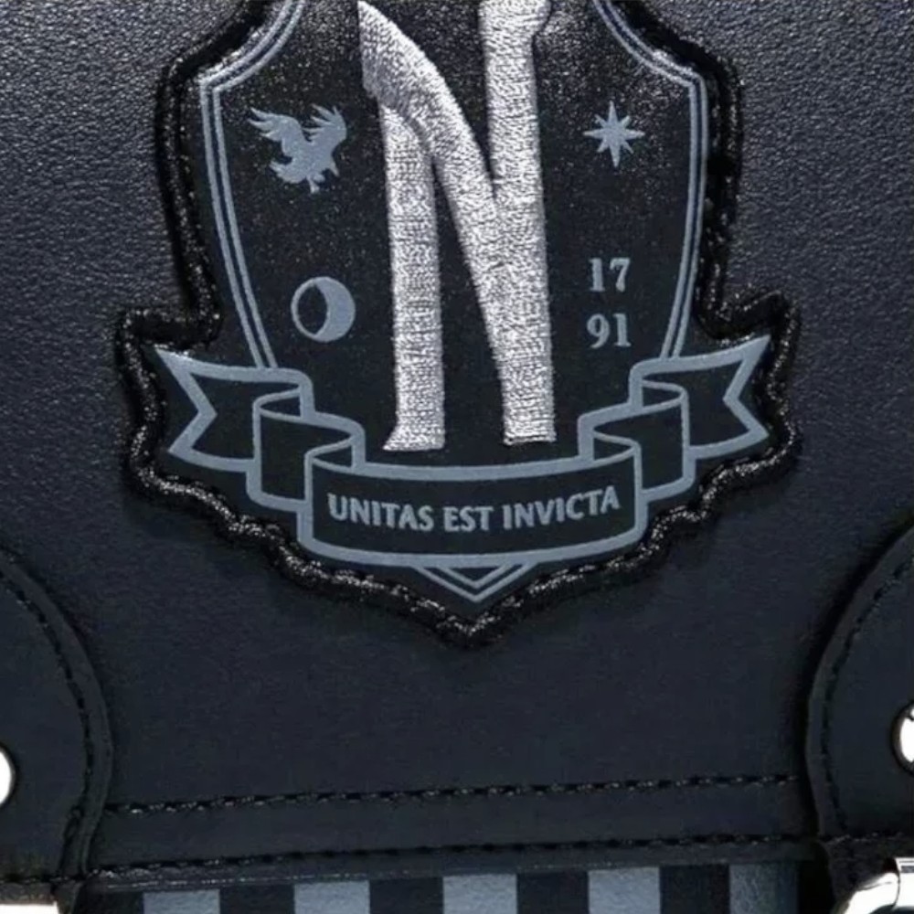 Mini sac à dos enfant Mercredi Addams avec écusson Nevermore