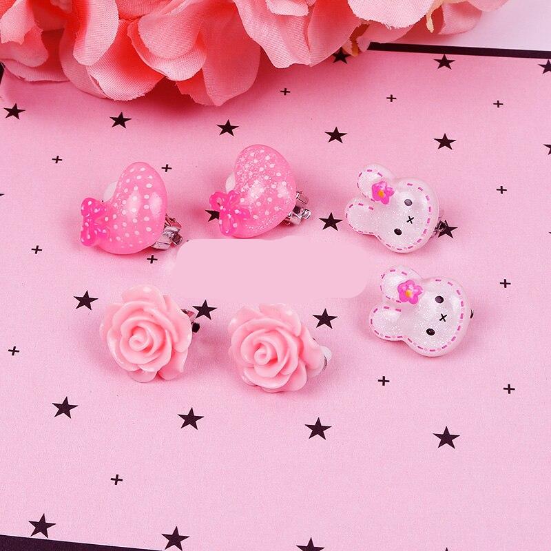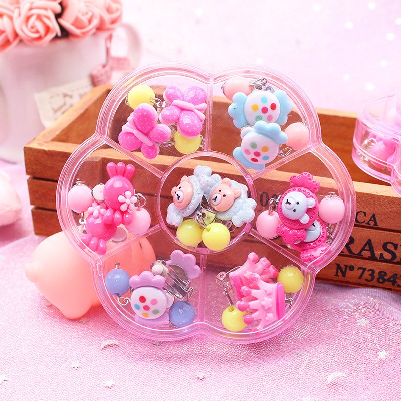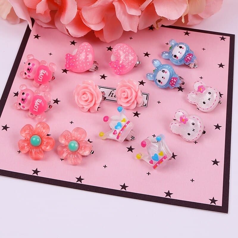 Lot de 7 boucles d’oreilles à clip fille motif dessin animé