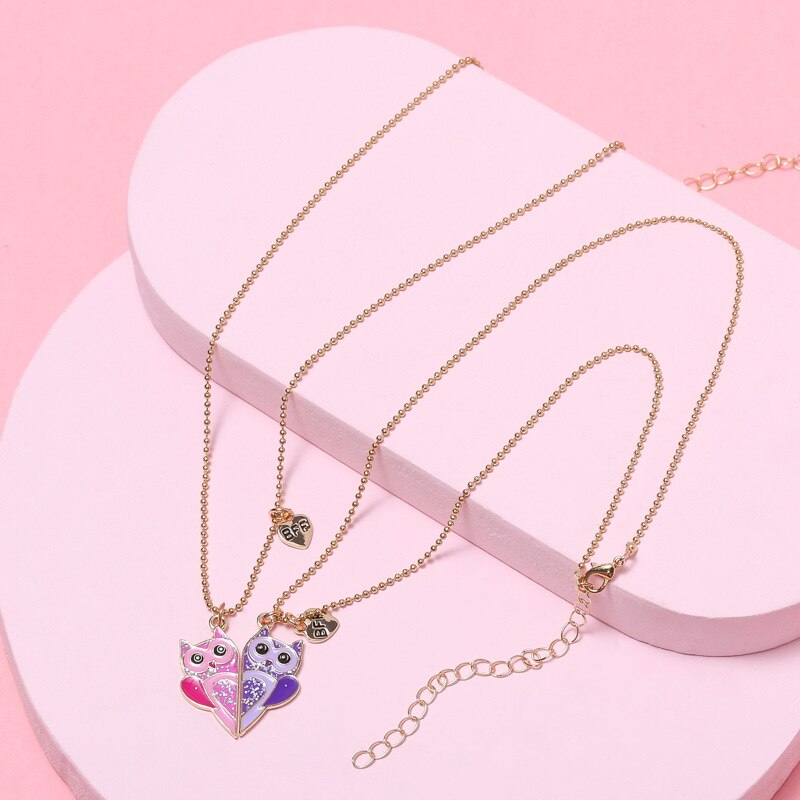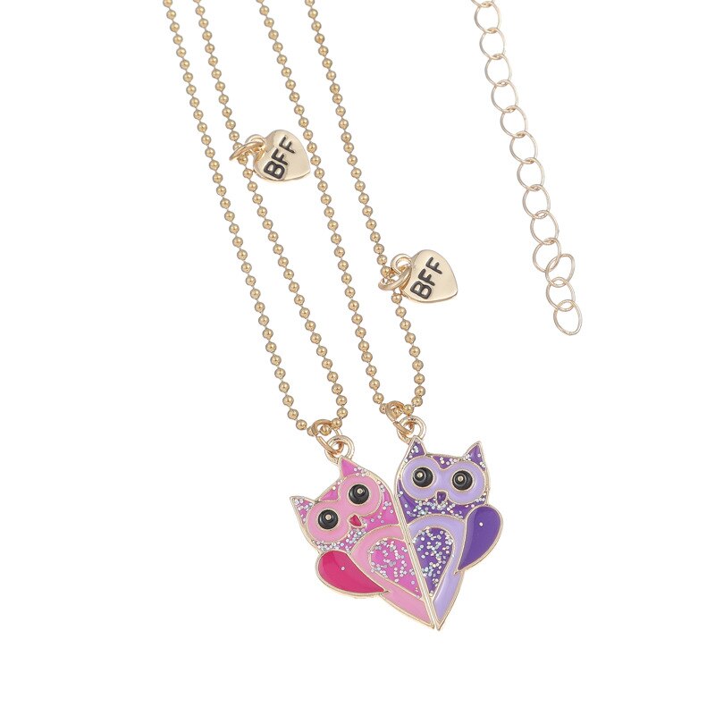 Envie d’offrir un cadeau à votre fille, meilleure amie ou sœur ? Ce joli collier en forme de cœur sera parfait ! Il est proposé en deux pièces. Ainsi, vous gardez l’une et vous offrez l’autre à votre fille, sœur ou meilleure amie. Une fois rassemblés, les deux pendentifs hibou forment un cœur.