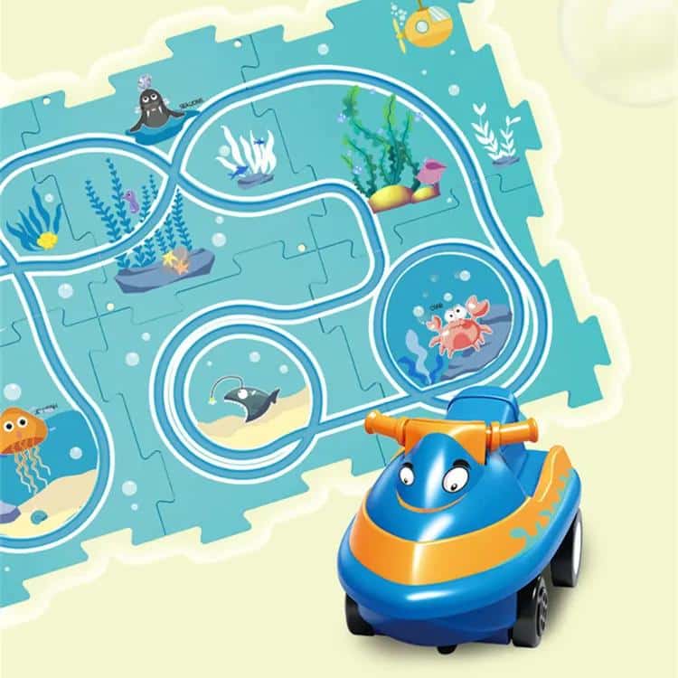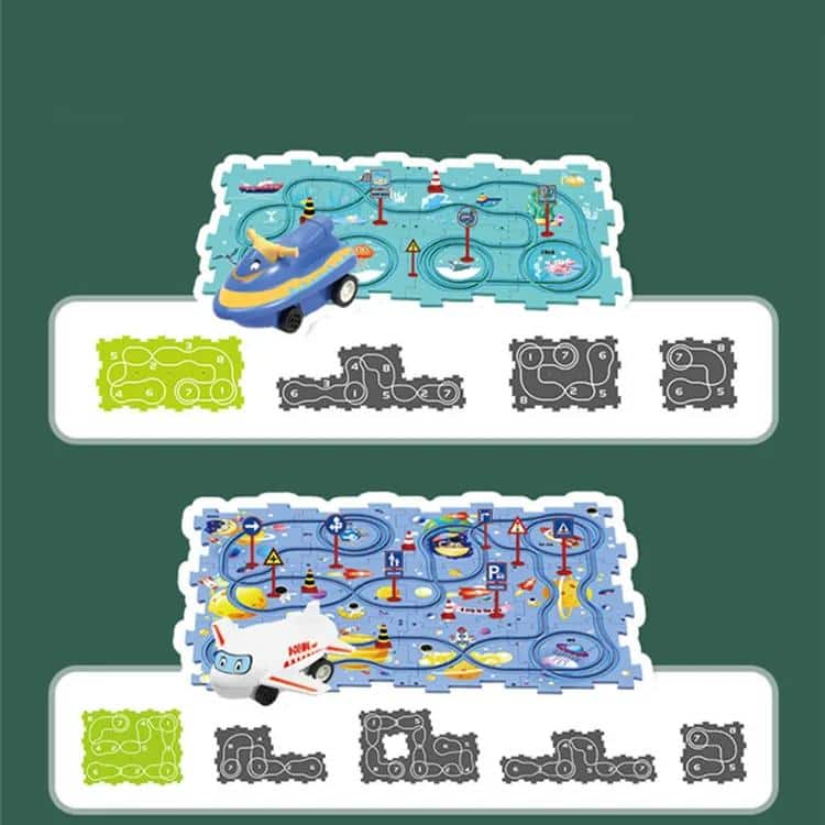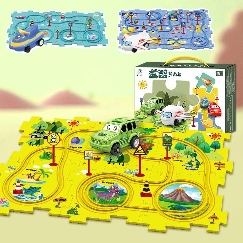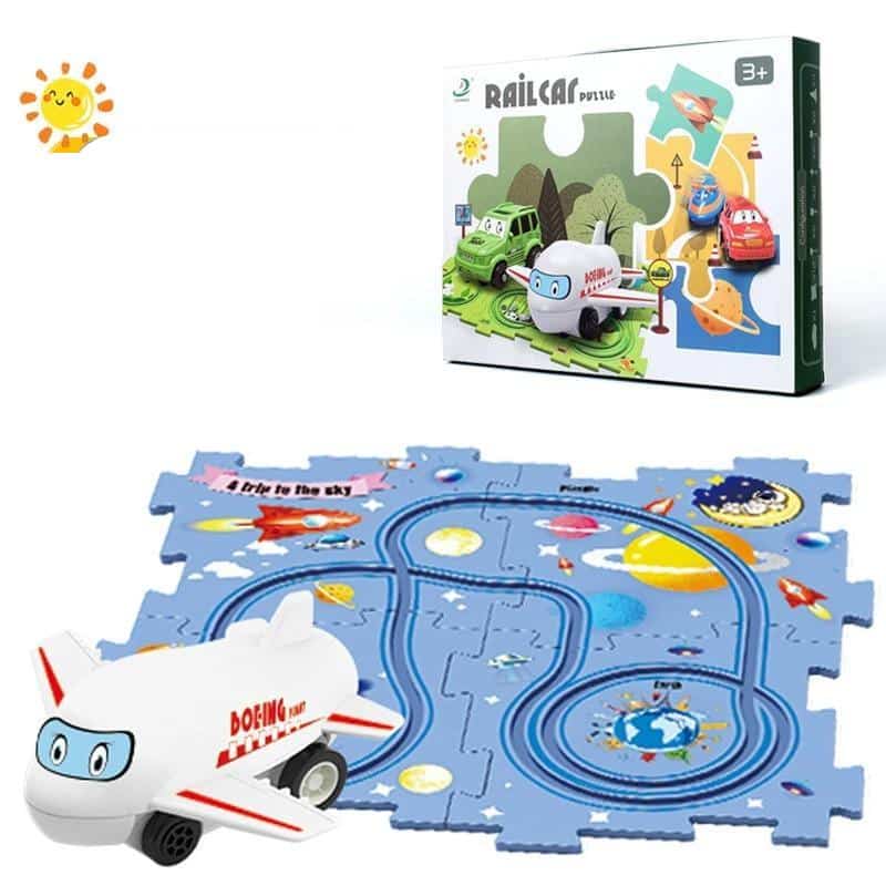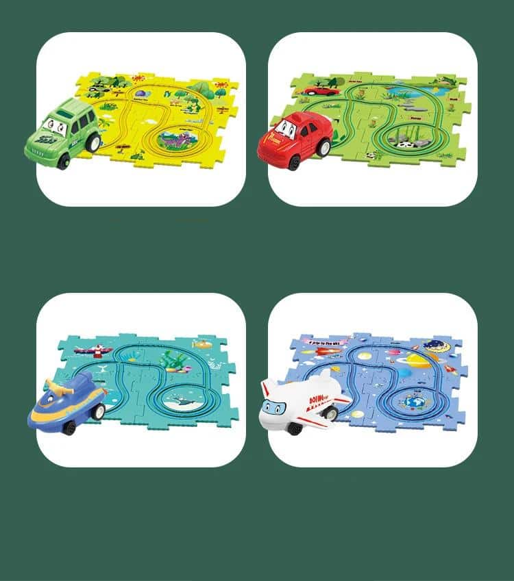 Tapis de jeu en puzzle avec circuit de course à thème pour enfant