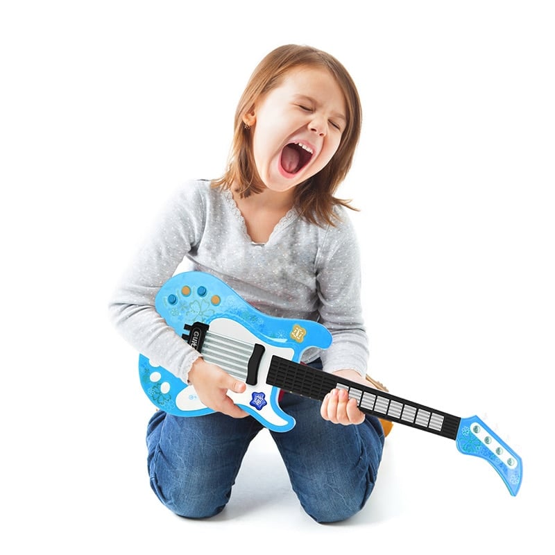 Cette guitare électrique ludique pour enfants est un excellent moyen pour les petits musiciens en herbe d’apprendre à jouer de la musique. La guitare est construite avec une finition brillante et colorée, ce qui la rend très attrayante pour les enfants. Les touches sont faciles à manipuler et à presser.