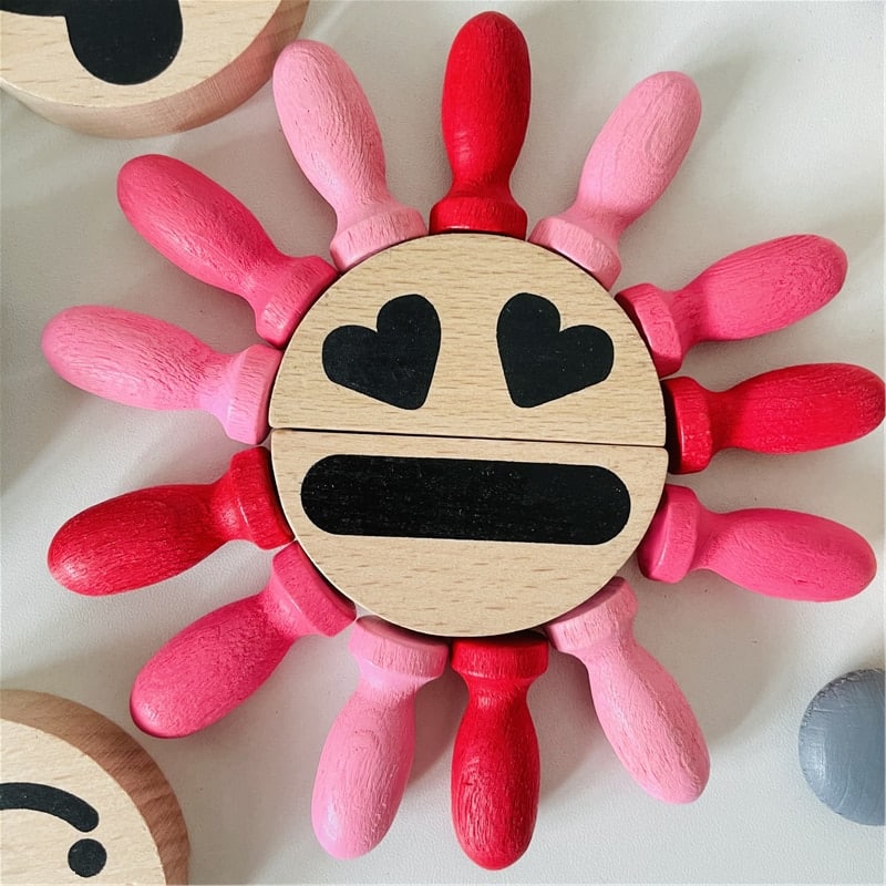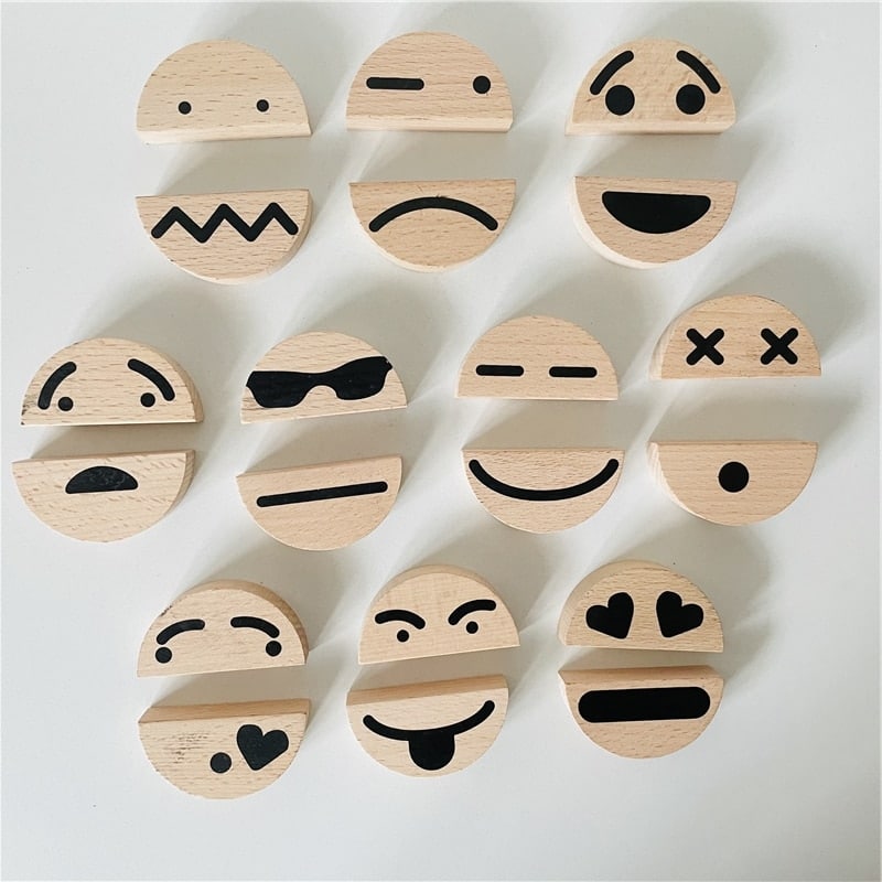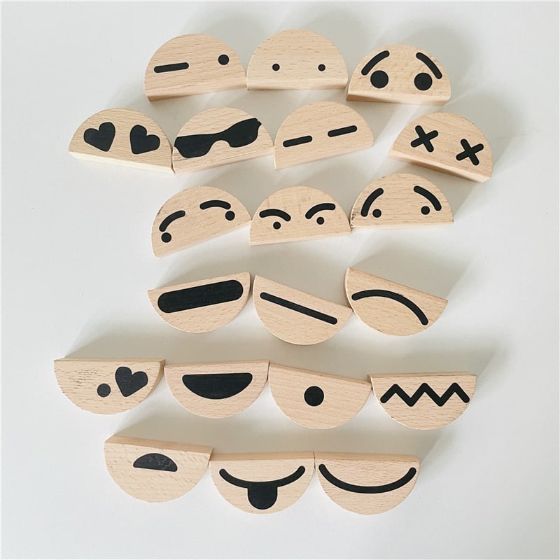 Découvrez notre nouveau jeu pour enfants. De mignons petits smileys fabriqués en bois, 10 émotions attendent votre enfant pour un maximum de plaisir. Il apprendra à développer sa pensée logique en plus de se divertir. Ce jeu est composé de 30 blocs en bois colorés.