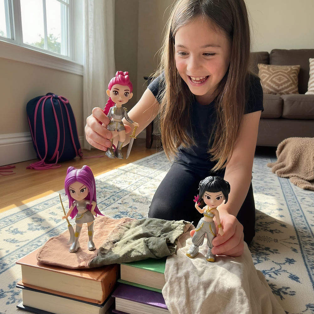 Plongez dans l’univers de cette collection de 6 jouets Huntrix Kpop Demon Hunters, où chaque héroïne dévoile deux identités fascinantes. Tenues civiles et armures se complètent pour des histoires pleines d’action et d’émotion. Un coffret collector qui stimule l’imaginaire et ravit les fans de Kpop fantasy.