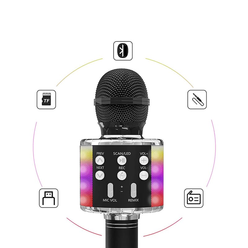Micro enfant de karaoké sans fil avec haut-parleur portable et lumières LED dansantes et colorées