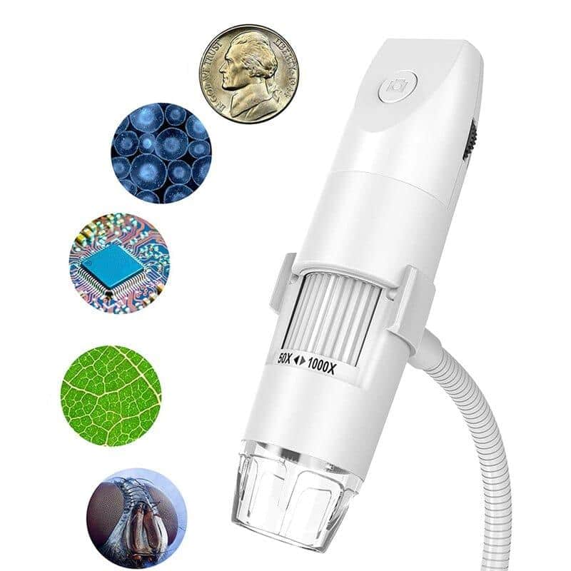 Votre enfant s’intéresse à la biologie et aux microorganismes ? Faites-lui cadeau de ce joli microscope numérique avec caméra, USB et WiFi. Il est doté d’un grossissement de 50 à 1000x qui permettra à votre enfant de bien observer les échantillons. Votre enfant pourra mettre en pratique les choses qu’il a apprises avec ce microscope.