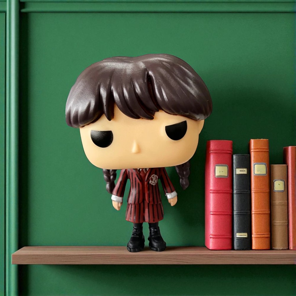 La mini Mercredi Addams version Funko Pop à collectionner amuse, intrigue et décore ! Elle est parfaite pour inventer des histoires, commencer une collection ou faire plaisir à un fan. Avec son style sombre et amusant, elle plaira à tous les enfants curieux de l’univers de Mercredi.