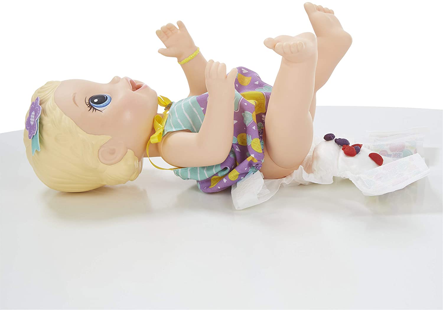 Découvrez notre Poupée Baby Alive, une poupée qui mange pour de vrai et qui fait popo et pipi. Avec tous ses accessoires, vous la nourrissez et la changez quand elle fera ses besoins. Cette poupée est livrée avec deux moules pour que vous puissiez lui donner de la pastèque afin de la nourrir.