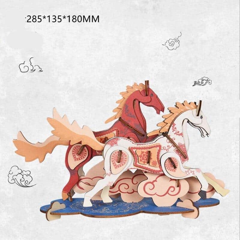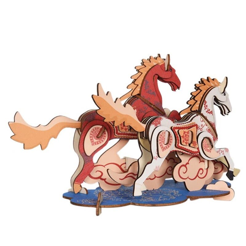 Puzzle en forme de cheval 3D en bois