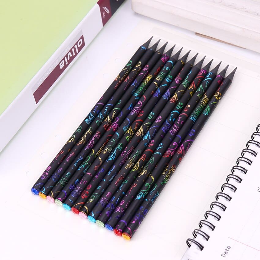 6 pièces de crayons HB à motifs dessins et diamants colorés